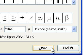... in potrdite na gumb Vstavi.