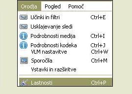![]() Odprete VLC in kliknete Orodja in nato Lastnosti. |