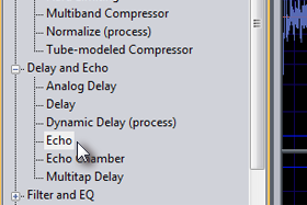 Med efekti pod Delay and Echo izberite Echo (odmev) ali Echo Chamber (komoren odmev), odvisno kak odmev želite.
