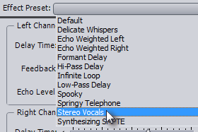 Odpre se vam okno, v katerem si pod Effect Preset izberite želen odmev.