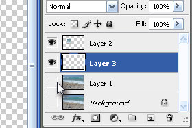 Spodnja dva layerja skrijete tako, da kliknite na ikone z očesi pred predoglednimi sličicami layerjev (glej sliko).