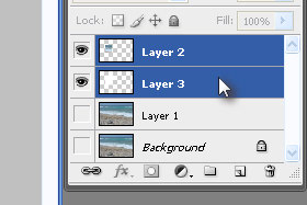 To morata biti dupliciran del fotografije in novi z belo barvo zapolnjen layer. Potem pa pritisnite tipki Ctrl + E, da jih združita. |