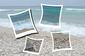 Potem pa ustvarite selekcijo, ki bo večja od dupliciranega dela fotografije in bo predstavljala belo barvo, kot ga poznamo na polaroidih (glej sliko). Pritisnite tipko D, da nastavite črno / belo barvo. Potem pa pritisnite tipki Ctrl + Del, da zapolnete ozančeni del z belo barvo. Sedaj bi moral biti nov layer zapolnjen z belo barvo in bi se moral nahajati pod dupliciranim delom fotografije. |