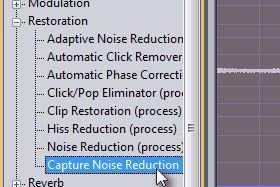 Med Restoration izberite Capture Noise Reduction, da si Audition zapomni to vrsto nezaželjenega ambienta.