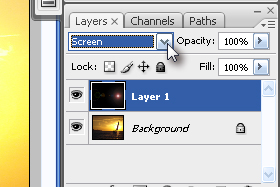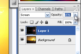 V paleti layerjev določite novemu layerju senčenje na Screen (glej sliko). |
