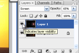 Layerju znižajte odstotek Opacity na okoli 65% (glej sliko). Vrednost Opacity (prosojnosti) lahko spreminjate po želji, saj ima vsako oko svojega malarja. |