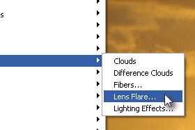 Sedaj kliknite zgoraj na Filter, Render in izebrite Lens Flare...