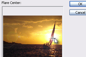 Zgoraj v oknu Flare Center pa kliknite z miško na del na fotografiji, kjer se nahaja sonce.