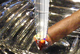 Sedaj pa v Warp transformaciji najprej povlecite spodnja dva dela layerja (glej sliko) ...