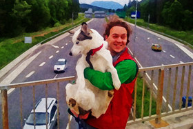 Jaz sem odprl fotografijo, kjer mi pozirata Vasja in njegova Mala Aska.