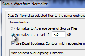Če želite uskladit posnetke na določeno glasnost označite Normalize to a Level of in vpišite število decibelov (priporočljivo od -20 do -5). |