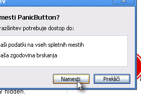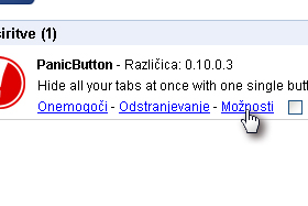 Kliknite na povezavo Možnosti ob razširitvi PanicButton.