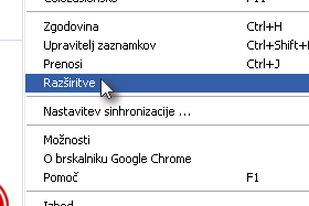 Do razširitve lahko dostopate tudi preko gumba, ki ga vidite na sliki.
