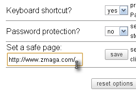 Nastavite lahko geslo, naslov spletne strani, na katero naj se preusmeri stran, in bljižnjico na tipkovnici. Jaz sem pustil privzete nastavitve, le povezavo do strani sem zamenjal. Ko boste končali kliknite na gumb Save. |
