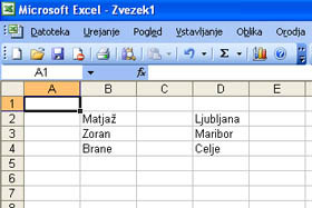 Odprite nov dokument in prepišite podatke iz moje slike.