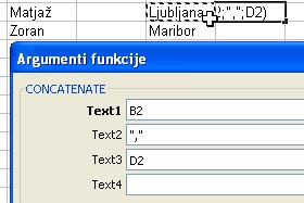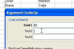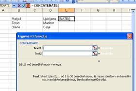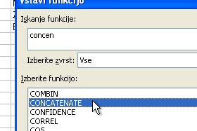 V polju "Izberite funkcijo" pa določite CONCATENATE.