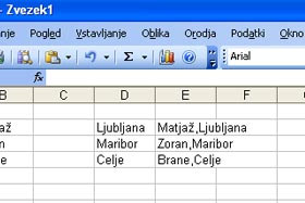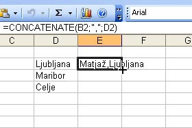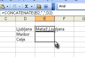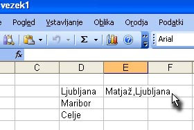 V celici vam je sedaj formula združila dve celici in dodala med njimi vejico.