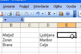 Držite gumb na miški in povlecite vse do polja, ki se nahaja desno od celice "Celje".
