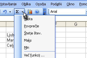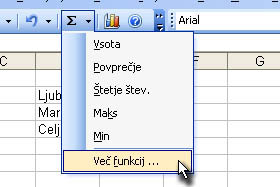 Kliknite na ikono za funkcije...