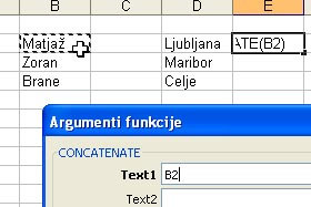 V polje Text1 se vam določi sedaj celica B2.