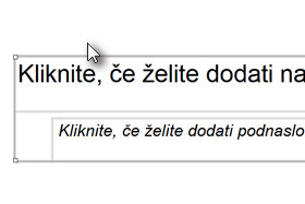 Potem z miško označite oba napisa in pritisnite tipko Del, da ju pobrišete. Označevanje začnite na praznem delu predstavitve in z miško povlecite čez oba napisa. |