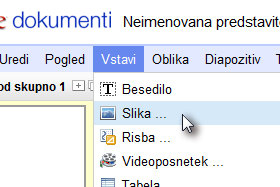 Sedaj nam Google dokumenti omogočajo dve možnosti, ena je slika iz vašega računalnika, druga pa slika kot spletna povezava.