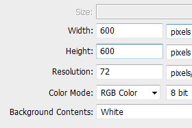 ![]() Ustvarite nov dokument z dimenzijami 600 x 600 pik z belim ozadjem (glej sliko).
