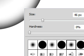 ![]() Potem kliknite z desnim miškinim gumbom na dokument in določite Hardness 0% in Size okoli 46 px (glej sliko). |