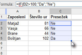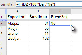 Preglednica bo dodala IF formulo v prej označeno celico, sedaj pa jo bomo samo še dokončali.