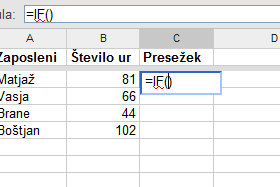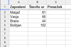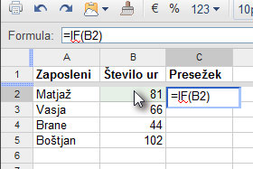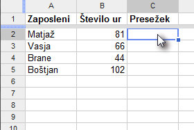 Vstavljena formula naj bo še vedno aktivna, vi pa kliknite na celico, ki predstavlja število ur za Matjaža ...