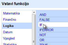 V novem oknu na levi strani izberite Logika in nato dvokliknite na formulo IF.