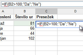 Potrdite s tipko Enter. 100 predstavlja število ur in vse kar bo več kot 100, bo napisalo Da, v nasprotnem primeru pa Ne. |