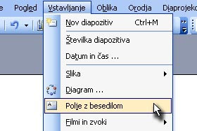 Kliknite na Vstavljanje in izberite Polje z besedilom. |
