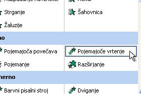 Sedaj v noevm oknu izberite učinek, ki se imenuje Pojemajoče vrtenje in potrdite na gumb V redu.
