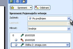 V polju Začetek določite S prejšnjim, Smer naj bo Z leve in Hitrost naj bo Srednja. |