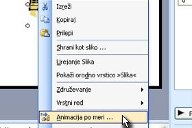 Kliknite na njega z desnim miškinim gumbom in izberite Animacija po meri... |