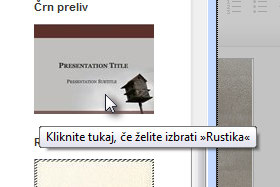 V novem oknu označite poljubno temo in predstavitev bo avtomatsko spremenila temo na vseh diapozitivih.