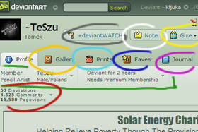S klikom na ta gumb uporabnika dodamo na našo listo uporabikov, ki jih spremljamo. Ko ta uporabnik doda kakšen nov izdelek, se nam ta prikaže v sporočilih. Note S klikom na ta gumb uporabniku pošljete neke vrste zasebno sporočilo. Give Uporabniku lahko podarite plačljivo članstvo, točke (ki služijo kot nek denar), lahko pa mu enostavno podarite brezplačno Lamo Gallery Tukaj si lahko ogledate vse uporabnikove izdelke. Prints Na ogled so vam vsi izdelki, ki jih ponuja za prodajo. Faves Pregledate lahko njegove najljubše izdelke. Journal Preberete lahko njegov dnevnik ... Podatki o uporabniku Izveste lahko uporabnikovo ime, starost, državo in tudi, ali ima plačljivo članstvo Statistika Same številke ... :) |