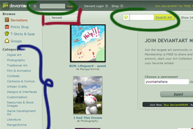 Odprimo torej deviantART. Pred registracijo bomo pogledali samo postavitev strani. Na prvi strani se prikazujejo najnovejše slike.