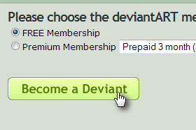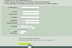 Ko obrazec izpolnimo, kliknemo Become a Deviant |