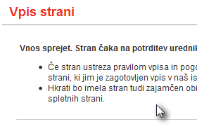 Če se vam odpre taka stran, kot jo vidite na sliki, je vnos sprejet, vendar mora počakati še na urednikovo potrdilo.
