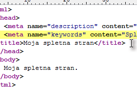 <meta name="description" content="To je moja prva spletna stran."> <meta name="keywords" content="Spletna stran, moja stran"> Shranite dokument, ter ga prenesite na splet. |