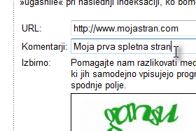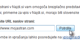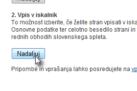 Kliknite tukaj, da odprete spletno stran, preko kater bomo dodali stran v zadetke iskalnika Najdi.si.