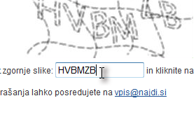 Prepišite črke s slike in potrdite s klikom na gumb Naprej.