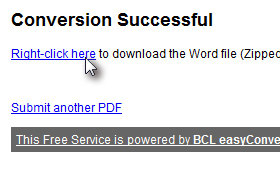 ![]() Ko se vam na strani prikaže sporočilo Converstion Successful kliknite na povezavo Right-click here (glej sliko). |