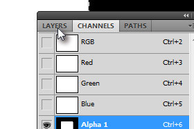 V oknu kanalov držite tipko Ctrl in kliknite na predogledno sličico prej ustvarjenega kanala (glej sliko).