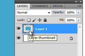 V oknu palete layerjev držite tipko Ctrl in kliknite na predogledno sličico novega layerja (glej sliko). S tem ukazom ste ustvarili selekcijo. |