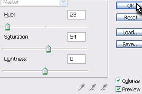 Sedaj pa natavite Hue na 23, Saturation 54 in Lightness na 0. Potrdite še OK. |