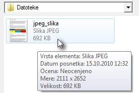 ![]() V oknu z raziskovalcem označite slikovno datoteko, katero želite pretvoriti. |