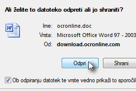 ![]() Ko vas brskalnik vpraša, kaj želite z datoteko, kliknite na gumb Odpri. |